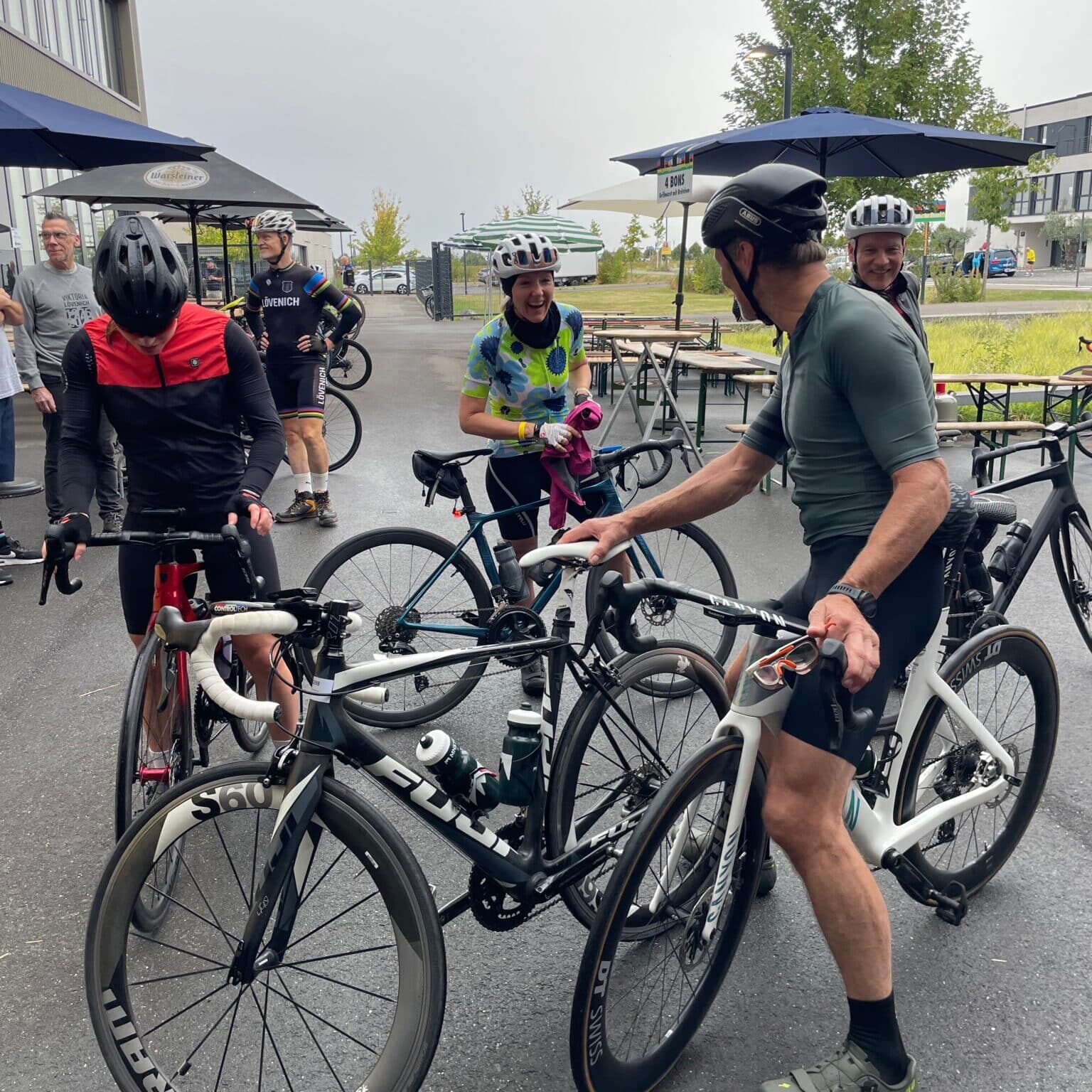 Unsere geführte Rennrad-Tour für Einsteiger startet um 10:30Uhr. Das Durchschnittstempo liegt bei ca. 20-22 km/h und findet auf unserer RTF-Strecke mit einer Länge von 50 km statt.